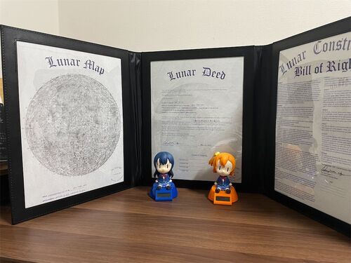 推しカプのために(あるいは自己顕示欲のために)月の土地を買いました。 【ご報告】推しカプ名義で月の土地を買いました。これで推しカプちゃんが月に移住しても安心ですね。3枚目の写真の赤四角が購入した土地の位置です。これからは月を見上げるたびに「…